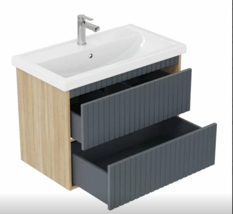 Тумба+Умывальник (80см) "Дайлер" подвесная Графит/дуб сонома