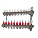 Коллектор STOUT на 6 вых. с расходомерами, с клапаном вып. воздуха и сливом SMS 0927 000006 Применяются для распределения и регулирования водяных потоков в контурах низкотемпературных систем отопления. Материал изготовления: нержавеющая сталь Количество выходов: 6 Тип коллектора: с расходомерами