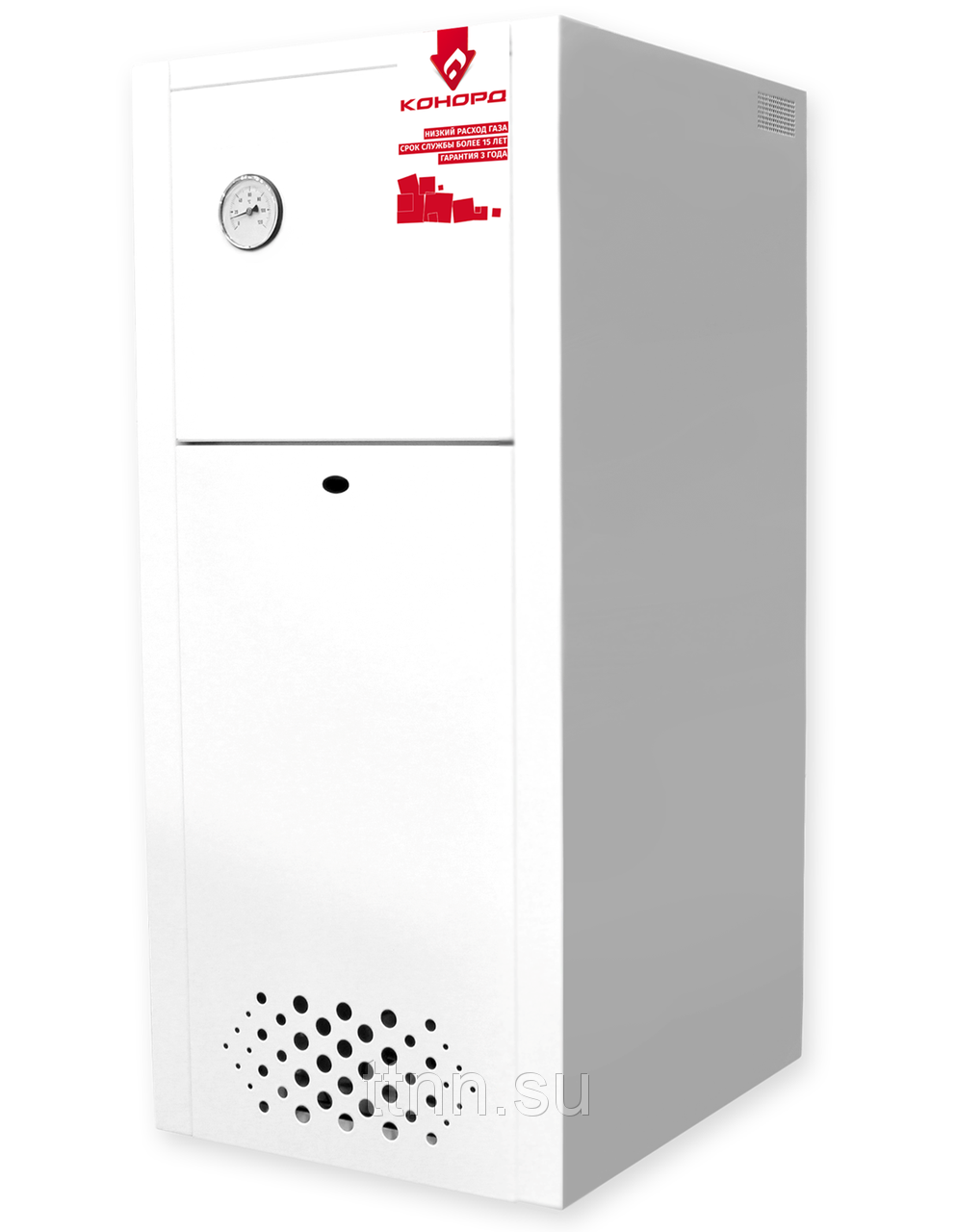 Сварной газотрубный теплообменник, изготовленный из высококачественной стали толщиной 3 мм. В теплообменнике применены дымогарные трубы специального зигзагообразного профиля, который обеспечивает эффективную теплопередачу. Это обеспечивает низкую температуру отходящих дымовых газов и номинальный КПД котла - 90%. Энергонезависымый котел, имеют малое гидравлическое сопротивление, и обеспечивают циркуляцию воды без насоса. Коэффициент полезного действия не меньше 90 % Номинальная тепловая мощность кВт : 12 Максимальный расход природного газа куб.м/ч: 2.8 Диапазон регулирования темпиратуры воды на выходе в системе отопления°С: от 50 до 90 +/- 5 Номинальное давление газа Па : 1274 +/- 100 Размеры (ВхШхГ) см : 96х40х61.5 Вес кг : 94 Присоединительный диаметр дымохода-114 мм Присоединительные размеры патрубков Газа G 1/2” Отопления G 1 1/2” Горячей воды G 1/2”