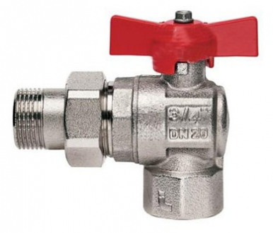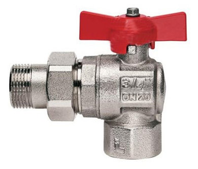 Кран шаровый Ду-25 (американка) "угловой" из цветного сплава, основной материал латунь. Рабочая среда- вода. Температура рабочей среды (наибольшая) +150 град. Страна происхождения Италия.
