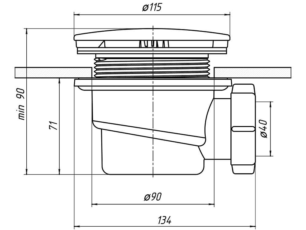 Диаметр подключения — 1 1/2 дюйма, диаметр выпуска — 90 мм, высота сифона — 65 мм. Компактная конструкция подходит для большинства душевых поддонов, а хромированное покрытие придаёт изделию современный вид. Прочные материалы обеспечивают долгий срок службы и устойчивость к воздействию влаги.